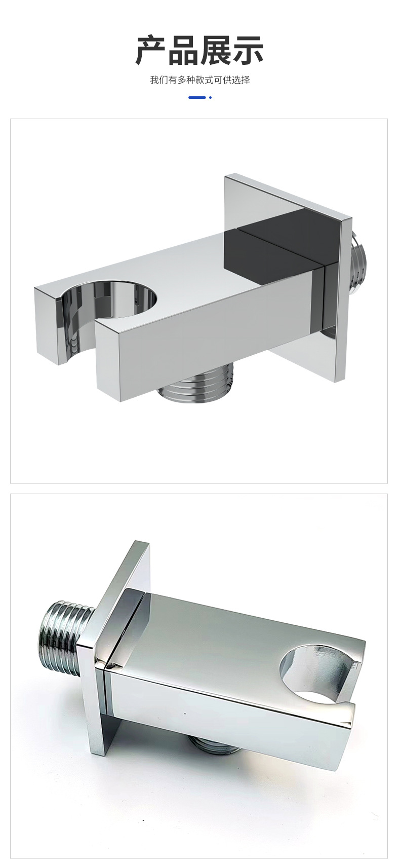 Diseño moderno y elegante:Presenta una forma cuadrada limpia con un acabado cromado de primera calidad. No sólo sirve como soporte de ducha funcional, sino que también mejora el atractivo estético general del espacio del baño.