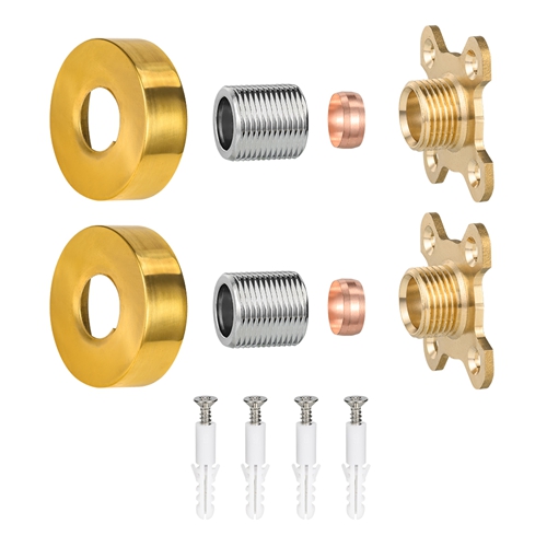 Estos kits de montaje de ducha redondos sirven para el baño. Su propósito principal es proporcionar una base resistente, plana y fácil de instalar para grifos de pared. El producto adopta una estructura compuesta de latón y acero al carbono: las piezas clave de fuerza y conexión que están en contacto directo con la pared y la interfaz de los grifos utilizan latón para garantizar la resistencia a la corrosión a largo plazo y la estanqueidad de la conexión; Como estructura de soporte principal, el cuerpo de la placa está hecho de acero al carbono de alta resistencia, lo que proporciona la rigidez de soporte necesaria para el conjunto y evita la deformación debido a tensiones a largo plazo. La superficie del cuerpo de la placa se trata mediante galvanoplastia y otros procesos, mostrando una apariencia dorada y fácil de limpiar. Está diseñado como un cuadrado estándar con un orificio de instalación preestablecido para combinar con los accesorios de grifos comunes y simplificar el proceso de instalación.