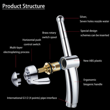 Nuestro rociador de bidé cuenta con una boquilla plateada de 7 orificios que brinda un flujo de agua suave, uniforme y potente. Proporciona una limpieza suave y profunda para la higiene personal, al tiempo que mantiene una fuerte presión para una limpieza eficaz del inodoro y de las superficies, perfecta para todas las necesidades de su baño.