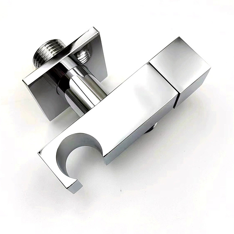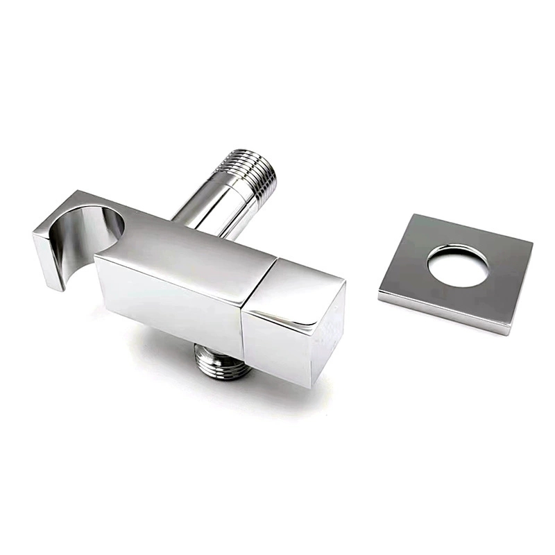 Válvula de ángulo cuadrado de latón macizo engrosado con soporte de ducha, válvula de cierre recta de 1/2" para bidé y ducha de mano, accesorios de plomería de baño