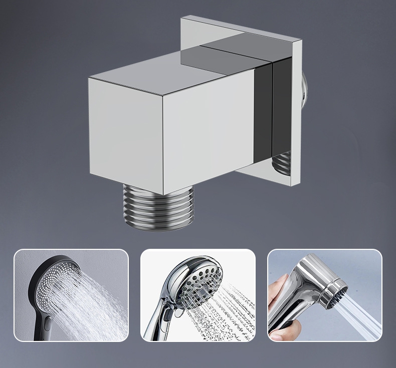 Este soporte de ducha cuadrado de latón es un accesorio de baño multifuncional que integra soporte de ducha y función de salida de agua, especialmente diseñado para la instalación empotrada de duchas de mano, con un moderno diseño de cubo minimalista.
