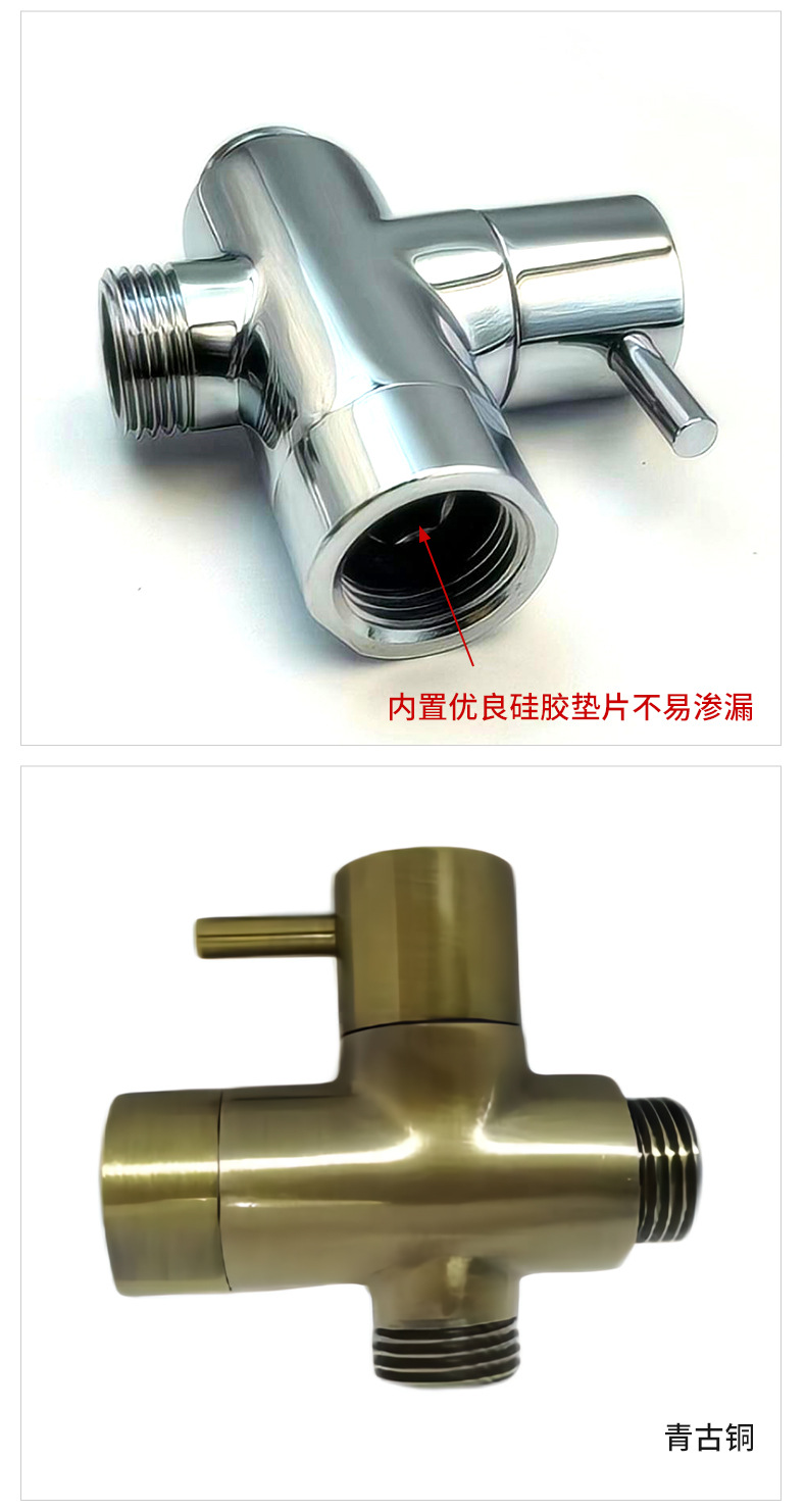 Su objetivo principal es proporcionar una solución integrada multifuncional, a prueba de fugas y fácil de instalar para sistemas de ducha de baño, integrando funciones de desviación de agua, control de flujo y soporte de ducha de mano en un diseño compacto. El producto adopta una estructura de latón macizo de alta pureza: el canal, las juntas roscadas, el núcleo de la válvula y las piezas de soporte que entran en contacto directo con el agua y la pared están fabricados con latón de primera calidad para garantizar resistencia a la corrosión a largo plazo, prevención de la oxidación, cero fugas de agua y un funcionamiento estable. La superficie del producto se trata mediante procesos de cromado y pulido, lo que muestra una apariencia cromada brillante similar a un espejo, antiincrustante, resistente a las huellas dactilares y fácil de limpiar.