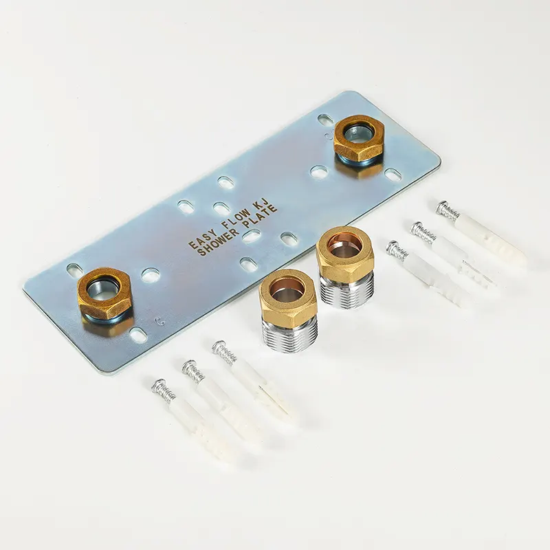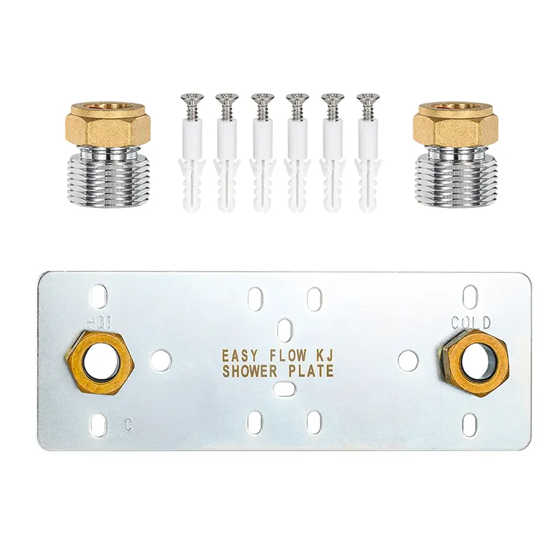 El valor principal de este kit de plato de ducha plateado radica en brindar a los usuarios una solución de instalación preintegrada, confiable y sin preocupaciones. El kit está estrictamente diseñado de acuerdo con los estándares de la industria e incluye el hardware clave requerido para una instalación estándar: componentes de latón de alta especificación para conexiones de sellado de vías fluviales, así como paneles metálicos que sirven como base de carga principal. Entre ellas, las piezas de conexión del núcleo están fabricadas con precisión con latón de grado 57-3, conocido por su excelente resistencia y resistencia a la corrosión. Los paneles de instalación correspondientes están hechos de acero inoxidable o acero al carbono de alta calidad, lo que proporciona un fuerte soporte para el producto. Su superficie presenta una apariencia plateada única, que parece simple. Todos los kits de componentes adoptan un diseño de interfaz universal de cuatro orificios montado en la pared, que es compatible con la gran mayoría de piezas estándar del mercado.